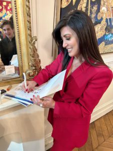 Κατά την διάρκεια της εκδήλωσης, η Αγγελική Αγγελίδη παρουσίασε τα εργα της, αποσπώντας τις καλύτερες κριτικές από τους Γάλλους και Έλληνες καλεσμένους, ιδιαίτερα στο σημείο όπου το εργο με την Ναυμαχία της Σαλαμινας άρχισε να “κινείται” μέσω QR code!